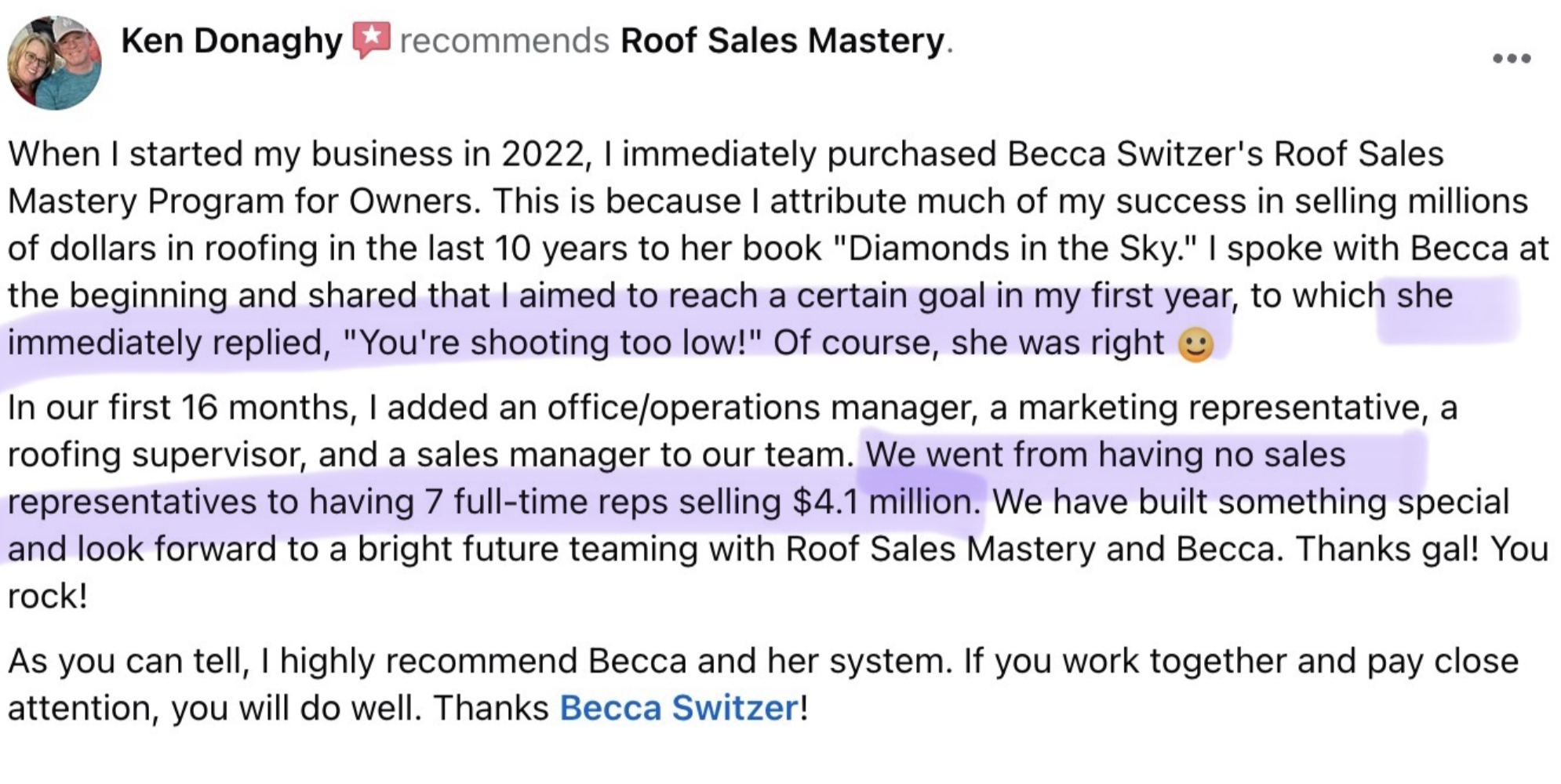 I’m Becca Switzer, CEO of Roof Sales Mastery and author of "Diamonds in the Sky: Introduction to Storm Restoration Roofing Sales."