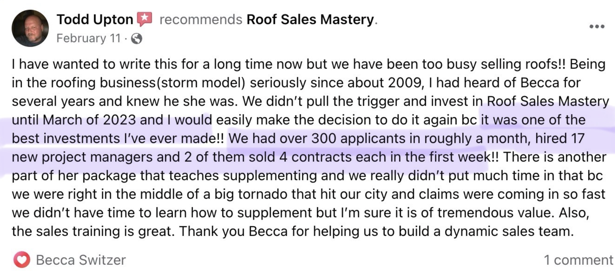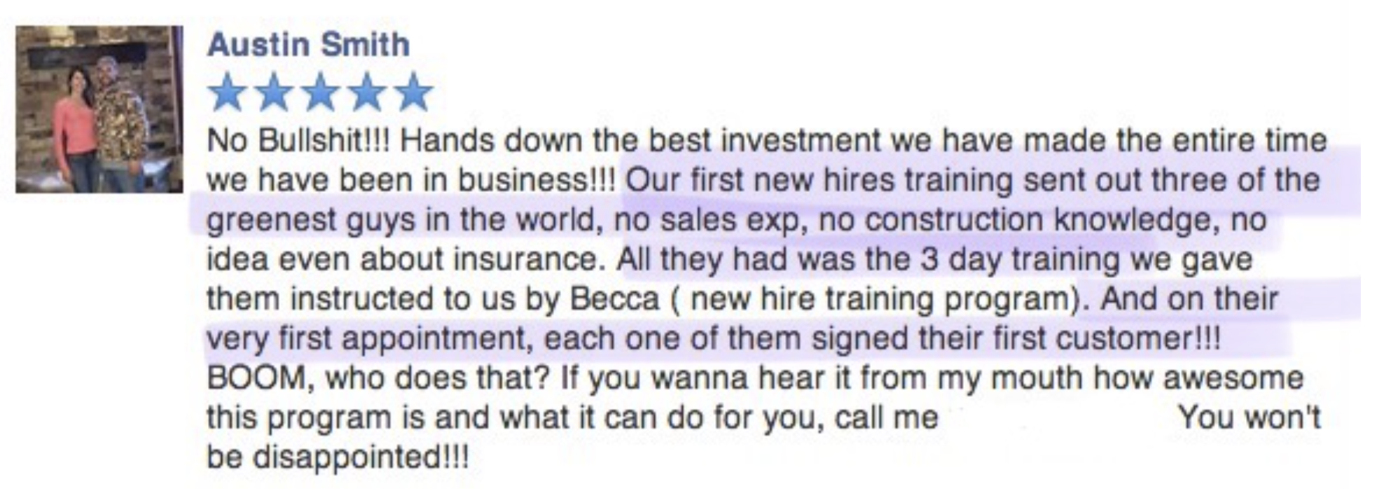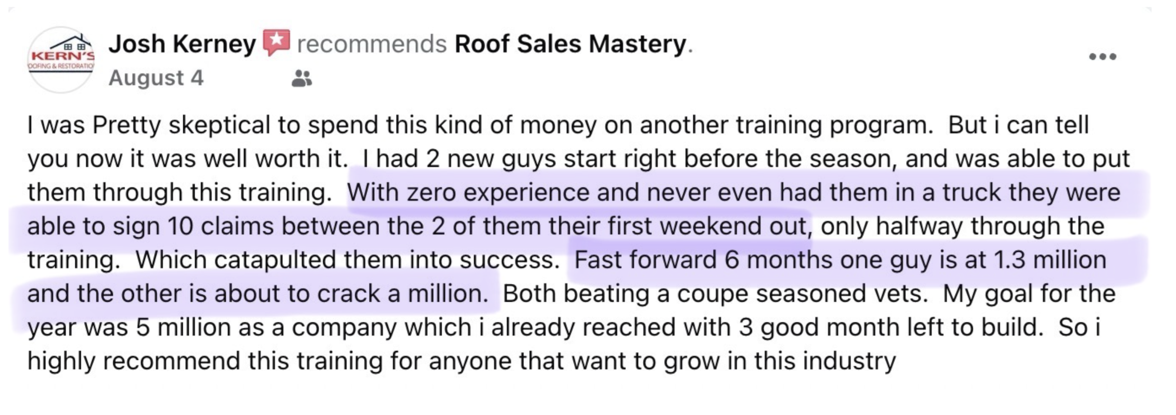 Since 2014 I’ve helped thousands of roofing contractors nationwide recruit and train sales teams (and maximize their supplementing results!) to 2X-4X their businesses each year with my proven, repeatable systems and trainings.