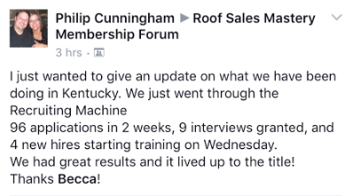Since 2014 I’ve been helping thousands of roofing contractors nationwide recruit and train sales teams (and maximize their supplementing results!) to 2X-5X their businesses each year with my proven, repeatable systems and trainings.