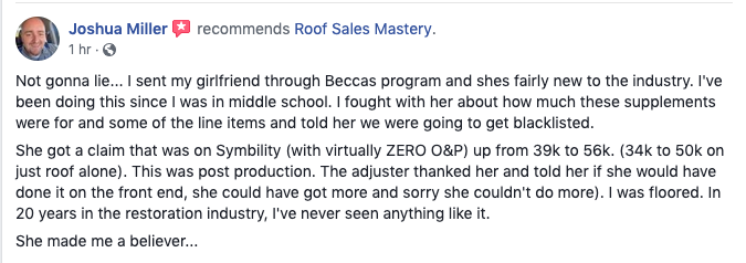 Roofing contractors have been implementing my Roof Sales Mastery supplement methods since 2014 to increase their claims by up to double, and I want to show you a peek behind the curtain for FREE so you're not in the dark. Grab it while it's here! :-)